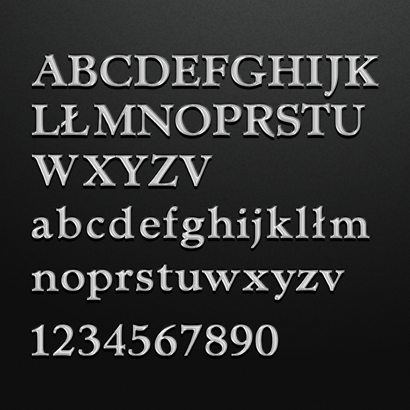 Dostępna jest w wersji duża/mała litera. Ta możliwość pozwala na urozmaicenie planowanego napisu w jego finalnym wyglądzie, mała litera doskonale sprawdza się w epitafiach, a na tablicy widnieje jedna czcionka a nie kilka.